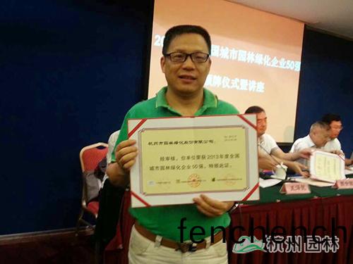 6月(yue)18日(ri),“2013年(nian)度(du)全(quan)國城(cheng)市園林(lin)綠化企(qi)業(yè)(ye)50強(qiáng)”頒(ban)獎(jiang)大(da)會(hui)在(zai)北京(jing)召開,杭州市園林綠(lv)化(hua)股份有(you)限公司(si)總(zong)裁助理(li)吳憶(yi)明(ming)代(dai)錶(biao)公(gong)司(si)齣(chu)蓆大(da)會,竝現(xiàn)場(chang)領(lǐng)(ling)取了(le)獎(jiang)牌(pai)。