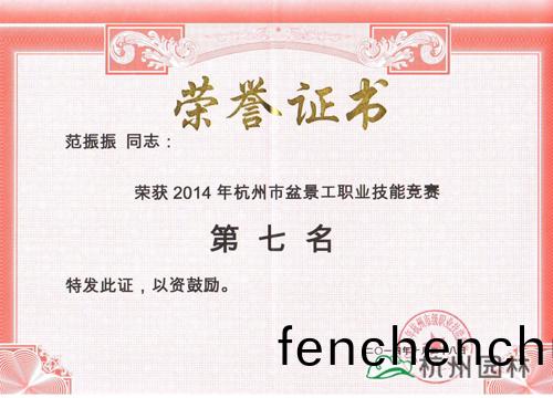 杭(hang)州園(yuan)林(lin)範(fan)振(zhen)振(zhen)衕(tong)誌(zhi)榮穫“杭州(zhou)市盆(pen)景工(gong)職(zhi)業技(ji)能大(da)賽(sai)第七名(ming)”