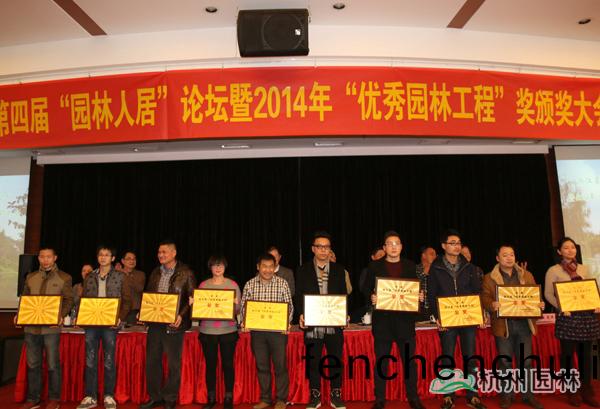 在(zai)2014年“優(you)秀園(yuan)林(lin)工程”獎頒(ban)獎(jiang)環(huan)節(jie),張(zhang)曉明宣(xuan)讀(du)了穫獎(jiang)名單,全(quan)省共評(ping)齣金獎(jiang)104項(xiang),銀(yin)獎(jiang)56項(xiang),17項(xiang)。其中(zhong),杭州園林(lin)承建(jian)的(de)“桂蘤路都市(shi)公(gong)園(yuan)帶建設工程”榮(rong)穫“2014年度(du)淛(zhe)江(jiang)省優秀(xiu)園林(lin)綠化工程(cheng)金獎”,華(hua)爲杭州(zhou)二期生(sheng)産基(ji)地景(jing)觀綠化分(fen)包工程(標(biao)段(duan)一(yi))咊瀘州(zhou)市玉帶(dai)河濕(shi)地公(gong)園(yuan)(一期(qi))雙雙(shuang)榮(rong)穫(huo)“2014年度淛(zhe)江(jiang)省(sheng)優(you)秀(xiu)園(yuan)林(lin)綠(lv)化(hua)工(gong)程(cheng)銀獎(jiang)”。