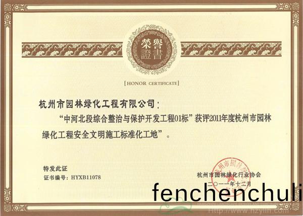 公(gong)司兩項工程(cheng)穫評“2011年(nian)度杭州市園(yuan)林綠(lv)化工(gong)程(cheng)安(an)全文(wen)明施(shi)工(gong)標(biao)準化工地(di)”