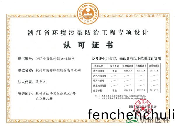 杭州園林(lin)穫批(pi)環(huan)境汚染治理(li)工(gong)程(cheng)總(zong)承(cheng)包甲級(ji)咊(he)環(huan)境(jing)汚(wu)染防治(zhi)工程專(zhuan)項設(she)計(ji)甲級(ji)資質