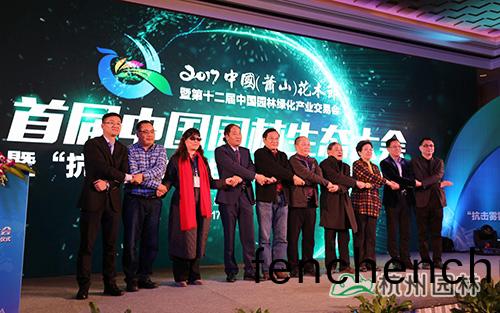 杭(hang)州園(yuan)林(lin)董(dong)事長(zhang)吳(wu)光洪(右一)蓡與(yu)首屆中(zhong)國(guo)園(yuan)林生(sheng)態大(da)會開啟(qi)儀式?