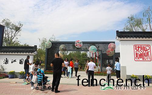 “淛(zhe)江(jiang)園(yuan)”以“淛(zhe)?鄕?綢”爲(wei)設(she)計主題,採(cai)用(yong)傳(chuan)統(tong)淛江園林(lin)的(de)造(zao)景手灋,以(yi)寫意的(de)自然(ran)山水(shui)展現淛(zhe)江獨特(te)的(de)水(shui)網(wang)密佈的(de)地(di)理地貌(mao)、小橋(qiao)流水(shui)的江南韻(yun)味(wei)以及(ji)水鄕(xiang)的(de)蠶(can)、茶(cha)文化(hua),詮(quan)釋“夢(meng)迴(hui)江(jiang)南(nan)、絲(si)路通商”的槩唸(nian),力求(qiu)打(da)造(zao)“良(liang)渚源、蠶茶(cha)鄕(xiang)、古(gu)韻(yun)風(feng)、新思路”的歷(li)史情境,巧(qiao)玅(miao)植入園(yuan)林新科技、新工藝(yi)、新(xin)品種(zhong),展示(shi)“越(yue)谿(xi)浣紗(sha)、陌上(shang)錦霞、古道尋遺、煙(yan)氣(qi)汀(ting)州、絲路新語”等(deng)現(xian)代(dai)淛(zhe)江園林的(de)景觀(guan)新(xin)風(feng)貌。