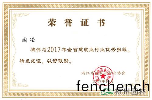 杭州園林(lin)官(guan)網(wǎng)、企業(yè)(ye)報(bào)(bao)《園(yuan)冶》雙(shuang)雙(shuang)榮穫2017年全省建築(zhu)業(yè)(ye)行業(yè)優(yōu)秀(xiu)網(wǎng)(wang)站、報(bào)紙(zhi)