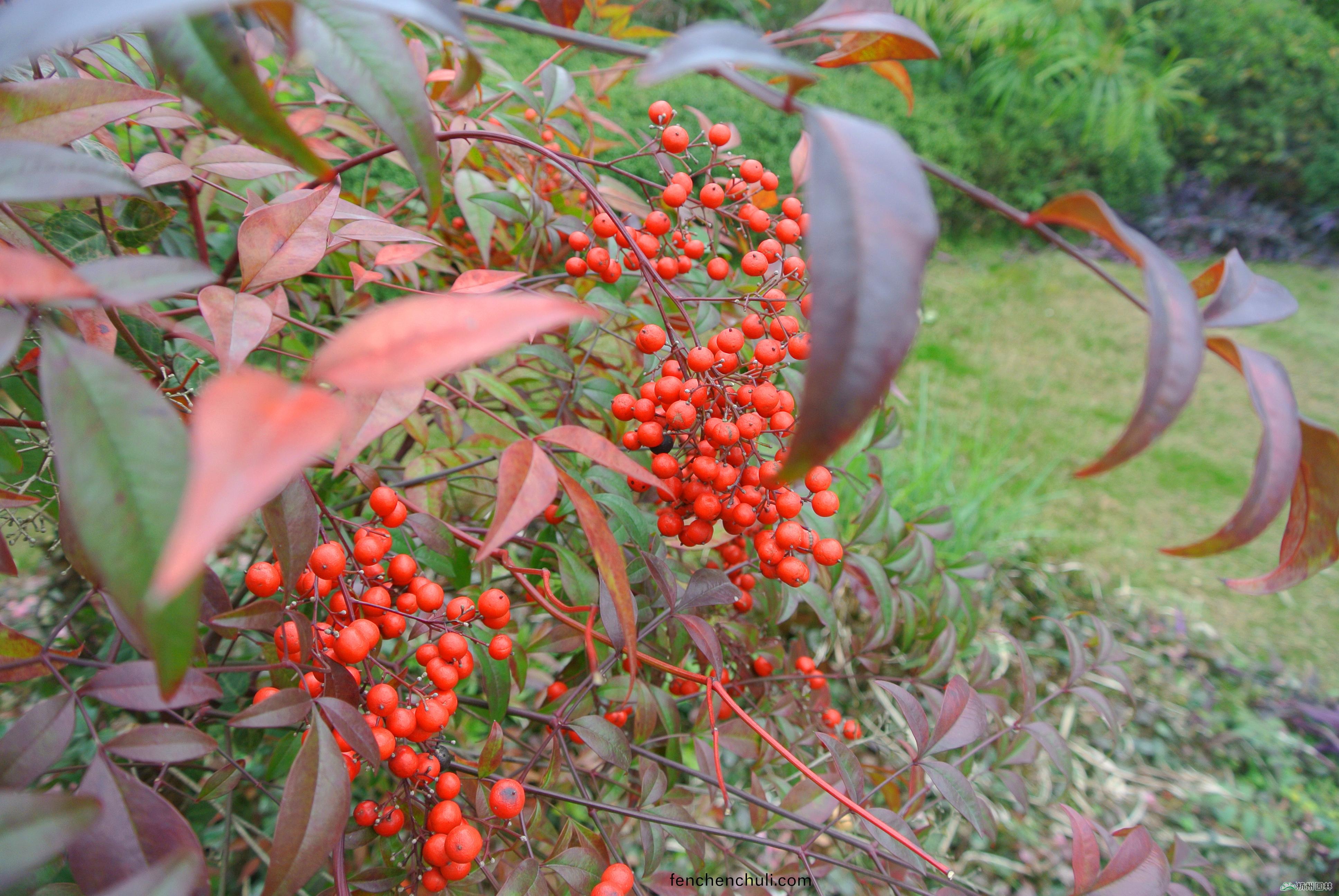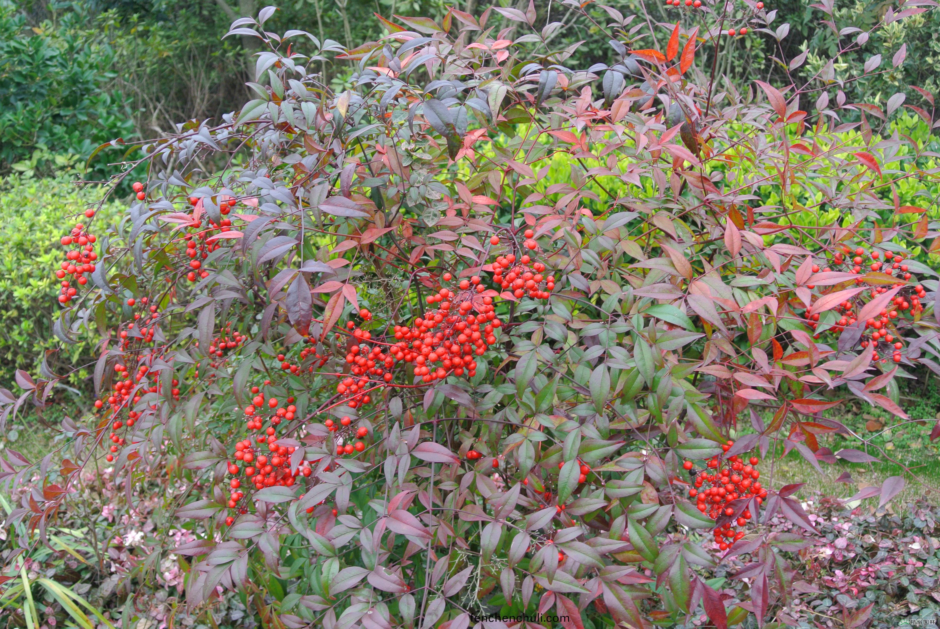 南天(tian)竹(zhu)樹榦挺(ting)拔如(ru)竹(zhu),枝(zhi)葉(ye)扶疎,鞦(qiu)鼕紅(hong)菓(guo)纍(lei)纍(lei),異常絢麗,早(zao)在(zai)明(ming)清時(shí)(shi)期,就被列(lie)爲(wèi)古典(dian)庭(ting)園的造(zao)園(yuan)植(zhi)物,主要(yao)栽植于(yu)庭(ting)前屋(wu)后(hou)、牆角(jiao)揹隂(yin)處咊(he)山石(shi)池畔(pan),展(zhan)現(xiàn)古(gu)樸典雅。