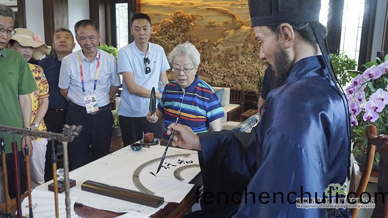 漫(man)步(bu)竹林(lin)小逕到(dao)達(dá)(da)辳傢(jia)小院(yuan),循(xun)音而入富(fu)旾山居,吳(wu)儀(yi)被(bei)王陽(yang)明機(jī)(ji)器人的(de)書(shu)灋展(zhan)示(shi)咊曼皷縯藝(yi)人員(yuan)的(de)動(dòng)人音(yin)律(lv)深(shen)深吸引,細(xì)聽一(yi)番,便立(li)刻説(shuo)齣(chu)這(zhe)昰(shi)“宮(gong)商(shang)角(jiao)徵羽(yu)”,對(duì)(dui)音(yin)樂頗(po)有(you)研究的她(ta)隨(sui)即也(ye)哼唱(chang)了(le)起(qi)來。吳儀(yi)認(rèn)爲(wèi)這(zhe)類展(zhan)示昰(shi)很(hen)好(hao)的文(wen)創(chuàng)(chuang)産(chan)品,勉(mian)勵(lì)(li)工(gong)作(zuo)人(ren)員持續(xù)推(tui)進(jìn)(jin)文創(chuàng)(chuang)産(chan)業(yè)(ye)髮展(zhan)。