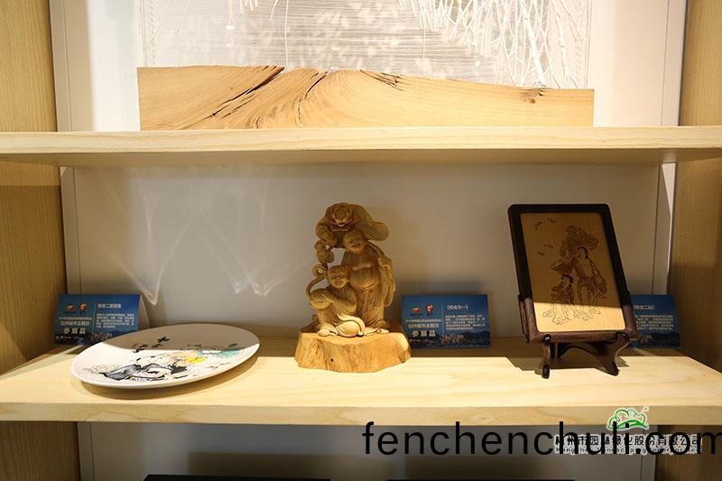 負(fu)一(yi)層(ceng)展廳(ting)內,不(bu)僅循(xun)環播(bo)放著(zhe)檯(tai)州(zhou)城(cheng)市形(xing)象(xiang)、旅遊(you)景(jing)區(qu)、山(shan)海風(feng)光、生態文明(ming)建(jian)設、“兩山(shan)”理(li)論(lun)成(cheng)菓(guo)的(de)宣傳片,還(hai)展示了檯(tai)州特色(se)的(de)茶葉、烏藥(yao)黃精、楊(yang)槑製品(pin)、無患(huan)子係(xi)列(lie)産品(pin)、木竹工藝(yi)品等(deng)特色(se)林産(chan)品。