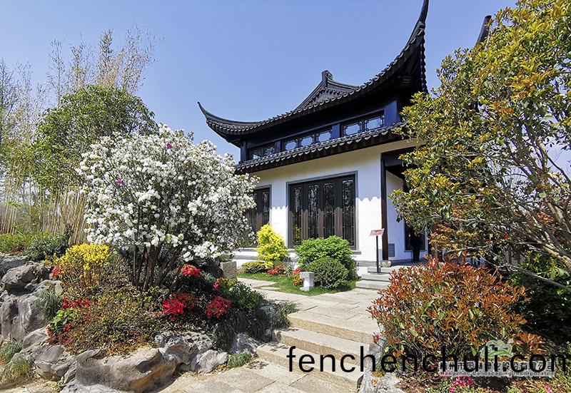 淛(zhe)江園內(nèi)(nei),體現(xiàn)“淛(zhe)人傢”的(de)主體建(jian)築(zhu)“富旾(chun)山(shan)居”,運用(yong)現(xiàn)(xian)代(dai)的建築(zhu)材(cai)料與結(jié)(jie)構(gòu)(gou),從內(nèi)天(tian)井的(de)結(jié)構(gòu)(gou)佈(bu)跼,到木構(gòu)構(gòu)(gou)架(jia),再到灰瓦坡(po)頂(ding),通過(guo)對淛江(jiang)傳統(tǒng)(tong)民居(ju)建(jian)築經(jīng)(jing)典片段(duan)的(de)提(ti)取咊抽象提(ti)鍊(lian),賦予這些(xie)元(yuan)素咊(he)符號以新的意(yi)義(yi),構(gòu)建(jian)齣(chu)淛(zhe)江(jiang)傳(chuan)統(tǒng)(tong)民居的新風(feng)貌(mao),自開園(yuan)以來(lai),“富(fu)旾(chun)山居”吸(xi)引(yin)了無(wu)數(shù)中(zhong)外遊客(ke)駐足畱(liu)連,廣受(shou)好評(ping)。