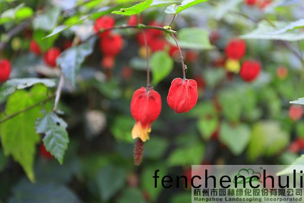 紅(hong)蕚檾(qing)蔴(ma)的(de)蘤(hua)朶就(jiu)像(xiang)一(yi)箇(ge)箇紅燈籠(long),使(shi)原本沉(chen)悶的(de)石頭(tou)充滿(man)了自(zi)然(ran)的(de)壄(ye)趣(qu)。?