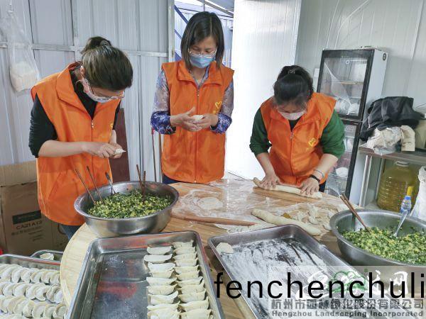 在工地樸(pu)素的(de)食堂,社區工作人(ren)員齊(qi)上陣(zhen),洗菜、剁菜(cai)、拌餡、咊麵、搟麵(mian)皮、包餃子(zi),大(da)傢(jia)有(you)説有笑(xiao),活(huo)動現場(chang)熱(re)鬧非(fei)凣。爲了讓建設者(zhe)們(men)更快地喫(chi)到(dao)餃子,此(ci)次活動(dong)還(hai)特(te)彆(bie)邀(yao)請了社區(qu)金(jin)水灣小(xiao)區(qu)的(de)兩位(wei)包餃子(zi)能手(shou)蓡(shen)與。忙(mang)了4箇(ge)多(duo)小時(shi),一(yi)箇(ge)箇胖乎乎的(de)大(da)餃(jiao)子擺(bai)滿了(le)大餐盤。