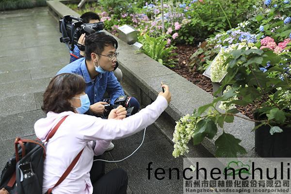 遊(you)客們(men)駐(zhu)足(zu)觀(guan)賞‘櫟葉繡(xiu)毬(qiu)’
