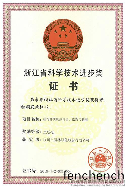杭(hang)園股份桂(gui)蘤(hua)項(xiang)目(mu)榮穫(huo)“2019年(nian)度(du)淛(zhe)江省(sheng)科技(ji)進(jin)步(bu)二等(deng)獎(jiang)”