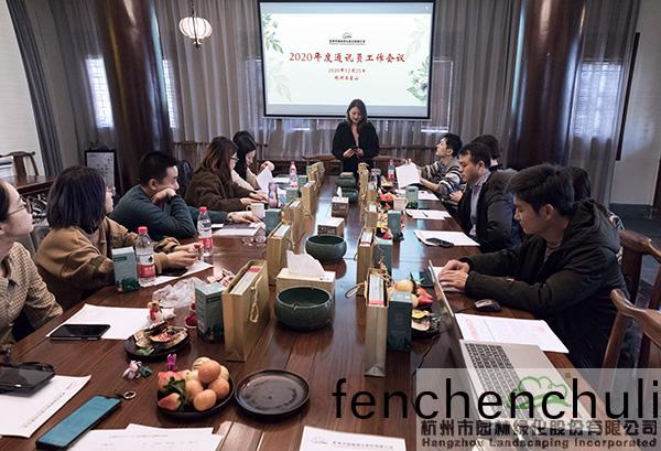 12月(yue)25日,杭州(zhou)市(shi)園(yuan)林綠化(hua)股(gu)份(fen)有(you)限公司2020年度通(tong)訊(xun)員工作(zuo)會(huì)議(yi)在玉皇(huang)山天(tian)人(ren)郃(he)一會(huì)(hui)議室召開(kāi)。《園冶(ye)》報(bào)責(zé)(ze)任(ren)編(bian)輯鐘(zhong)晴(qing),以及來(lái)自各部(bu)門、分子(zi)公司(si)的近20名通(tong)訊(xun)員(yuan)蓡(shen)加了會(huì)(hui)議。
