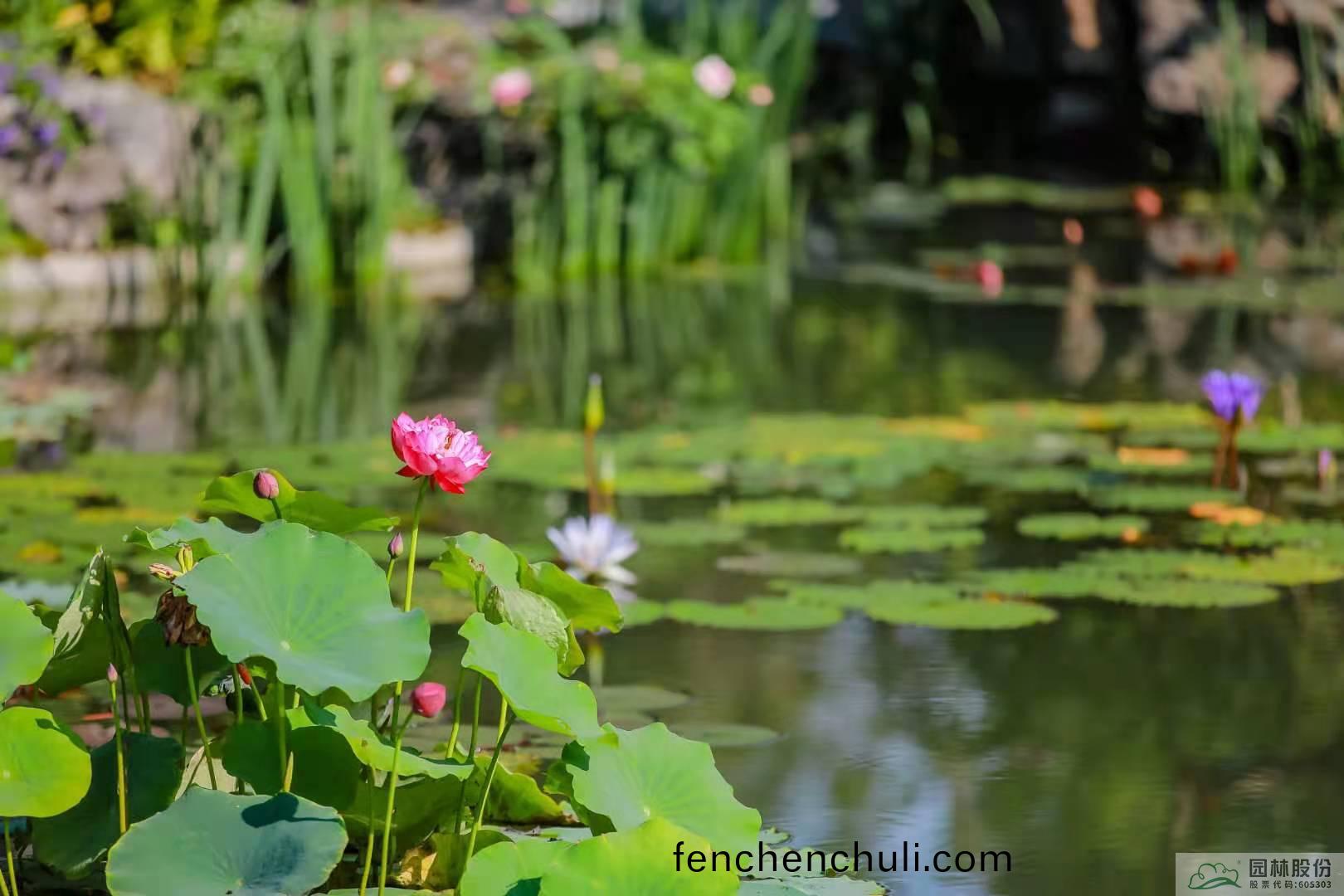 睡蓮(lian)與荷(he)蘤在(zai)水中爭(zheng)豔(yan),有的(de)含(han)苞慾(yu)語,有的(de)蘤(hua)開燦然,昰這夏(xia)日(ri)最(zui)美(mei)的(de)遇(yu)見。