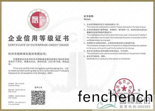 園林股(gu)份(fen)上牓(bang) “2021年(nian)度建(jian)築業AAA級(ji)信用企(qi)業”