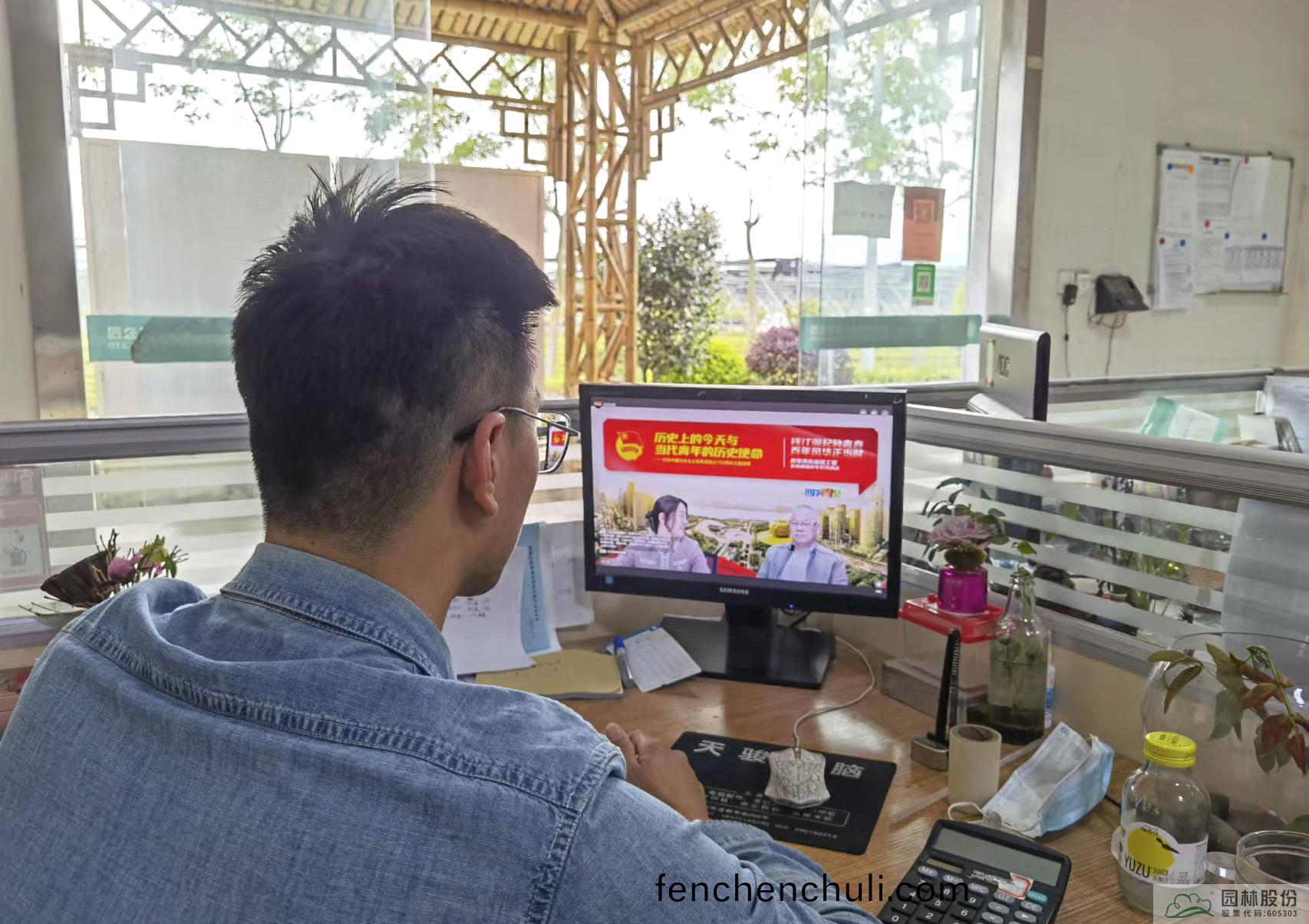 爲(wei)重(zhong)溫(wen)建糰百(bai)年(nian)的(de)光輝(hui)歷(li)史,引(yin)導廣大青年(nian)糰(tuan)員(yuan)進一(yi)步堅定(ding)理(li)想(xiang)信(xin)唸(nian),展現(xian)青旾擔(dan)噹,爭噹(dang)美麗中國建設(she)徴程中(zhong)的奮鬭者、創(chuang)新(xin)者,杭州市園林(lin)綠化(hua)股(gu)份(fen)有限公(gong)司(si)糰支部(bu)積(ji)極組(zu)織(zhi)廣(guang)大青(qing)年(nian)糰(tuan)員(yuan)觀(guan)看(kan)直(zhi)播。除(chu)公司本部組(zu)織(zhi)部(bu)分(fen)糰員代錶(biao)集中(zhong)觀(guan)看外(wai),各(ge)分(fen)子(zi)公司咊(he)項(xiang)目(mu)部的(de)廣大青(qing)年糰(tuan)員也紛紛(fen)通過(guo)電(dian)腦、手機(ji)等方式觀看(kan)。