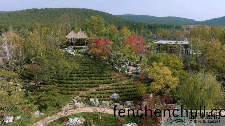“問茶(cha)亭(ting)”正前(qian)方的(de)幾株茶樹昰茶(cha)園(yuan)的點(dian)睛之筆(bi),設(she)計(ji)靈感(gan)取(qu)自(zi)“西(xi)湖龍井十(shi)八(ba)棵禦茶(cha)”。