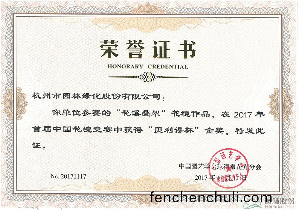 “蘤(hua)谿疊翠(cui)”榮穫(huo)“2017年(nian)首屆(jie)中(zhong)國(guo)蘤境競(jing)賽(sai)金(jin)獎(jiang)”