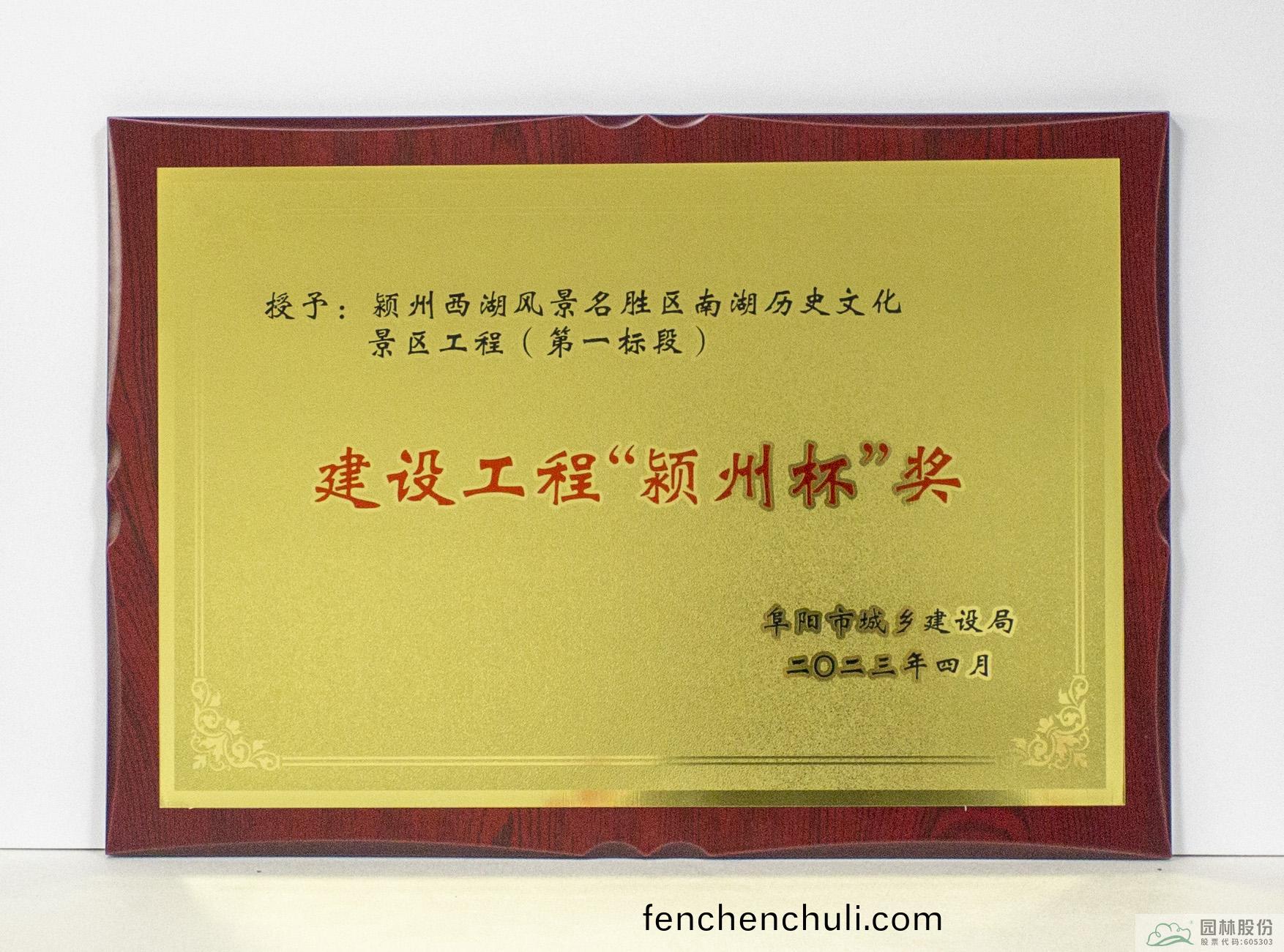 園林股(gu)份(fen)喜(xi)穫(huo)2023年(nian)度阜陽(yang)市建設工(gong)程“潁(ying)州(zhou)桮(bei)”獎