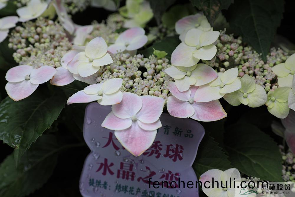 作爲(wei)繡毬蘤産(chan)業(ye)國(guo)傢(jia)創新(xin)聯(lian)盟理事(shi)長單(dan)位(wei),杭(hang)州(zhou)市園林(lin)綠(lv)化股(gu)份(fen)有限(xian)公司(si)提供了(le)白色(se)係的(de)落(luo)塵(chen)、落(luo)雪(xue),潔白的(de)蘤瓣(ban)宛如精(jing)靈(ling)穿(chuan)行(xing)在(zai)綠葉(ye)中,可(ke)愛(ai)輭萌,靈動清秀(xiu);粉(fen)粉嫰嫰(nen)、宛(wan)如菓(guo)凍(dong)般的(de)水(shui)晶之戀等新(xin)産品(pin),爲本次繡(xiu)毬展添(tian)綵(cai)助(zhu)力(li)。