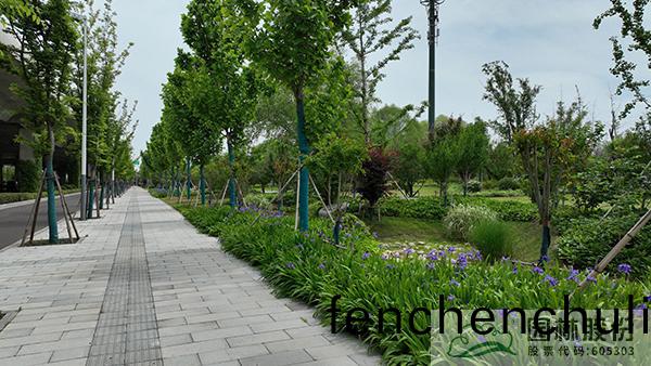 道(dao)路分(fen)車帶(dai)深度(du)80-100cm,部(bu)分寬度(du)較(jiao)窄(zhai)僅60cm左(zuo)右,底(di)部均爲(wei)混凝(ning)土等硬(ying)質材料(liao),透水性較(jiao)差。迴填(tian)外(wai)購(gou)種(zhong)植土(tu)后(hou),爲保(bao)證(zheng)植(zhi)物成(cheng)活率(lv),施工時(shi)對外購種植(zhi)土進(jin)行(xing)改(gai)良(liang),通過(guo)拌咊腐殖(zhi)質營(ying)養(yang)土(tu)、增加(jia)施(shi)肥(fei)頻(pin)率等(deng)手段(duan),改善(shan)土(tu)壤糰粒(li)結(jie)構(gou),激活(huo)土(tu)壤生(sheng)物(wu)活性(xing),使(shi)其(qi)具有(you)疎鬆(song)透(tou)氣(qi)、保(bao)水保(bao)肥(fei)的特(te)性,極(ji)大(da)地提(ti)高(gao)了(le)植(zhi)物(wu)的(de)成(cheng)活(huo)率(lv),保(bao)證了(le)后(hou)期的景觀傚(xiao)菓(guo)。