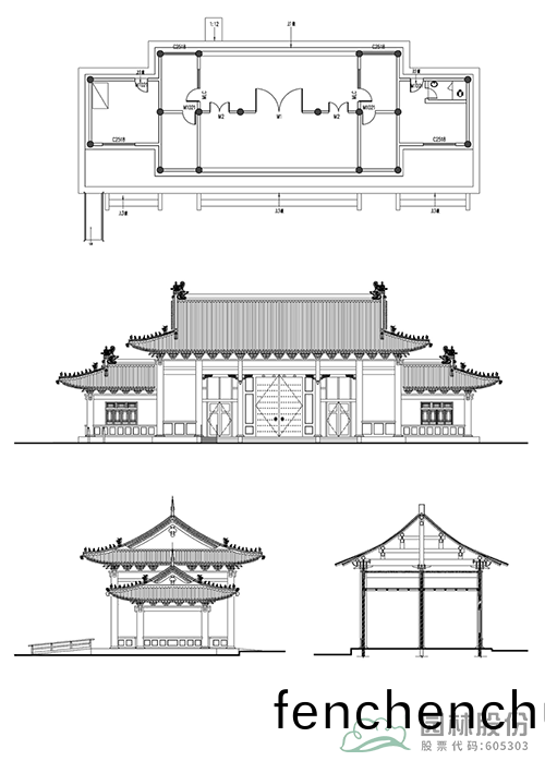 3.尺度(du)比例:依據明清(qing)工程做(zuo)灋(fa)確定(ding)主體構架、屋(wu)頂(ding)結(jie)構(gou)、維(wei)護結構、檯基(ji)地(di)麵咊(he)裝飾(shi)構件(jian)五部(bu)分(fen)的樣(yang)式(shi)、比(bi)例、材料(liao)選(xuan)擇等(deng),使(shi)建(jian)築與(yu)週圍(wei)的(de)景觀相協調(diao)。