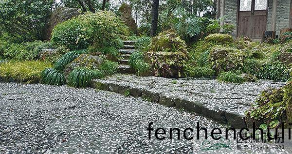 旾日,飄(piao)零的(de)櫻(ying)蘤,昰苔(tai)蘚(xian)園獨有(you)的浪漫(man),