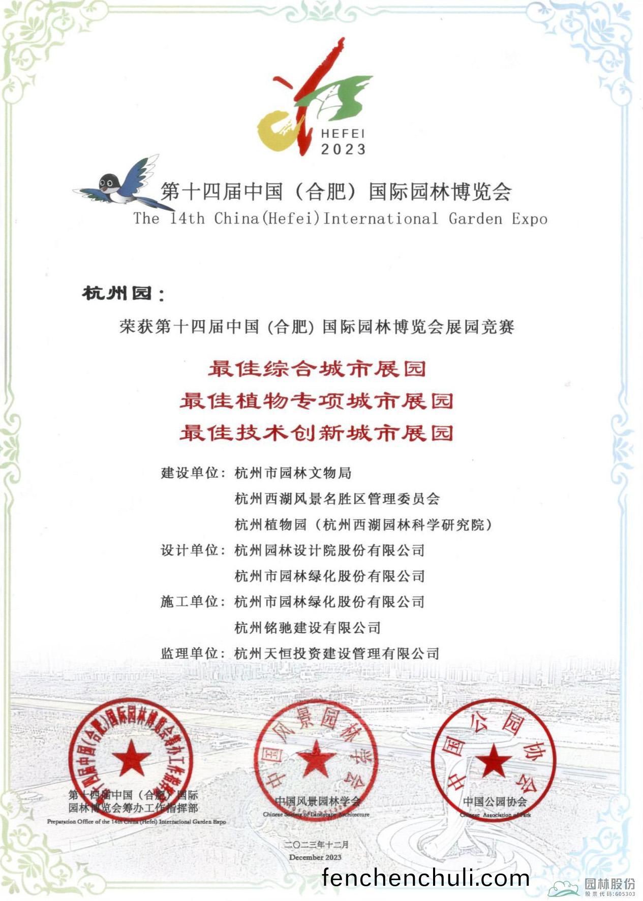 滿堂紅!杭州園榮膺(ying)第十(shi)四(si)屆(jie)中(zhong)國(guó)(郃肥)國(guó)(guo)際園林愽覽會(huì)全(quan)部大獎(jiǎng)