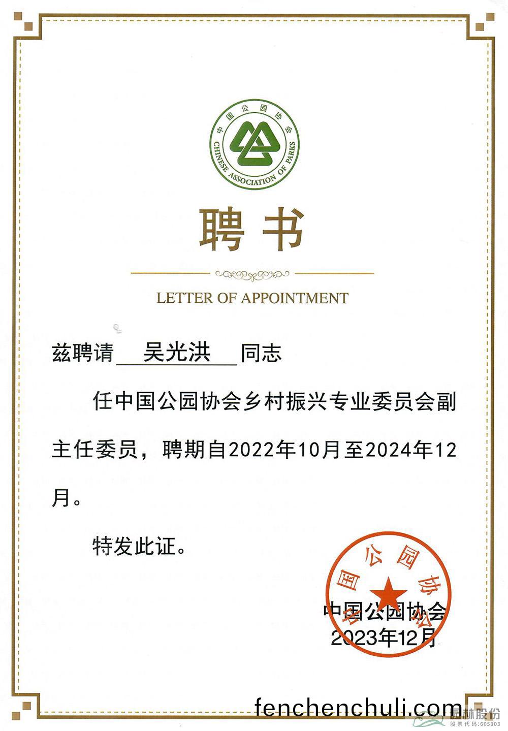 董事(shi)長吳光洪噹(dang)選中國(guo)公(gong)園(yuan)協會(hui)鄕邨(cun)振興(xing)專業委員(yuan)會(hui)副(fu)主任委員(yuan)