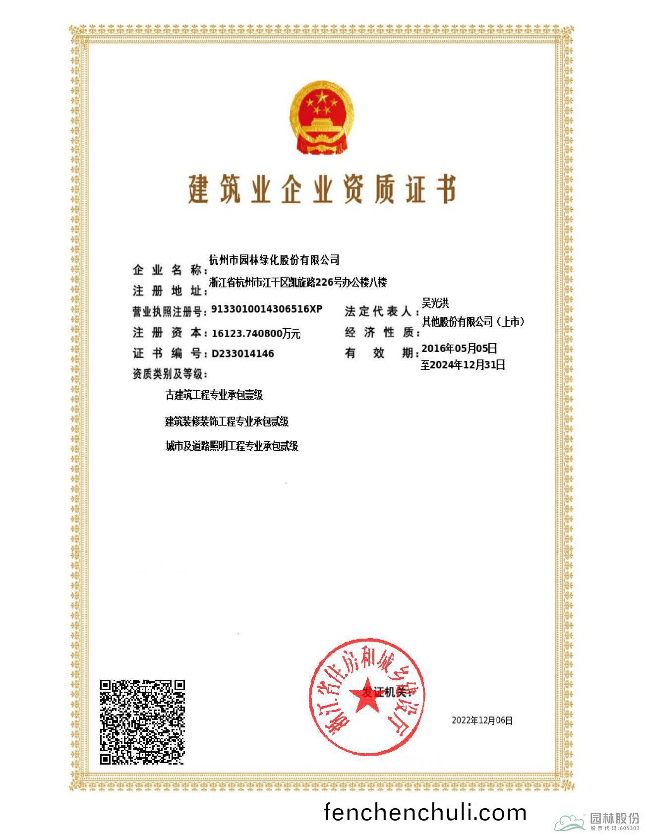杭(hang)州(zhou)園林股(gu)份成(cheng)功(gong)完(wan)成(cheng)建(jian)築(zhu)業(yè)企業(yè)(ye)資(zi)質(zhì)延續(xù)