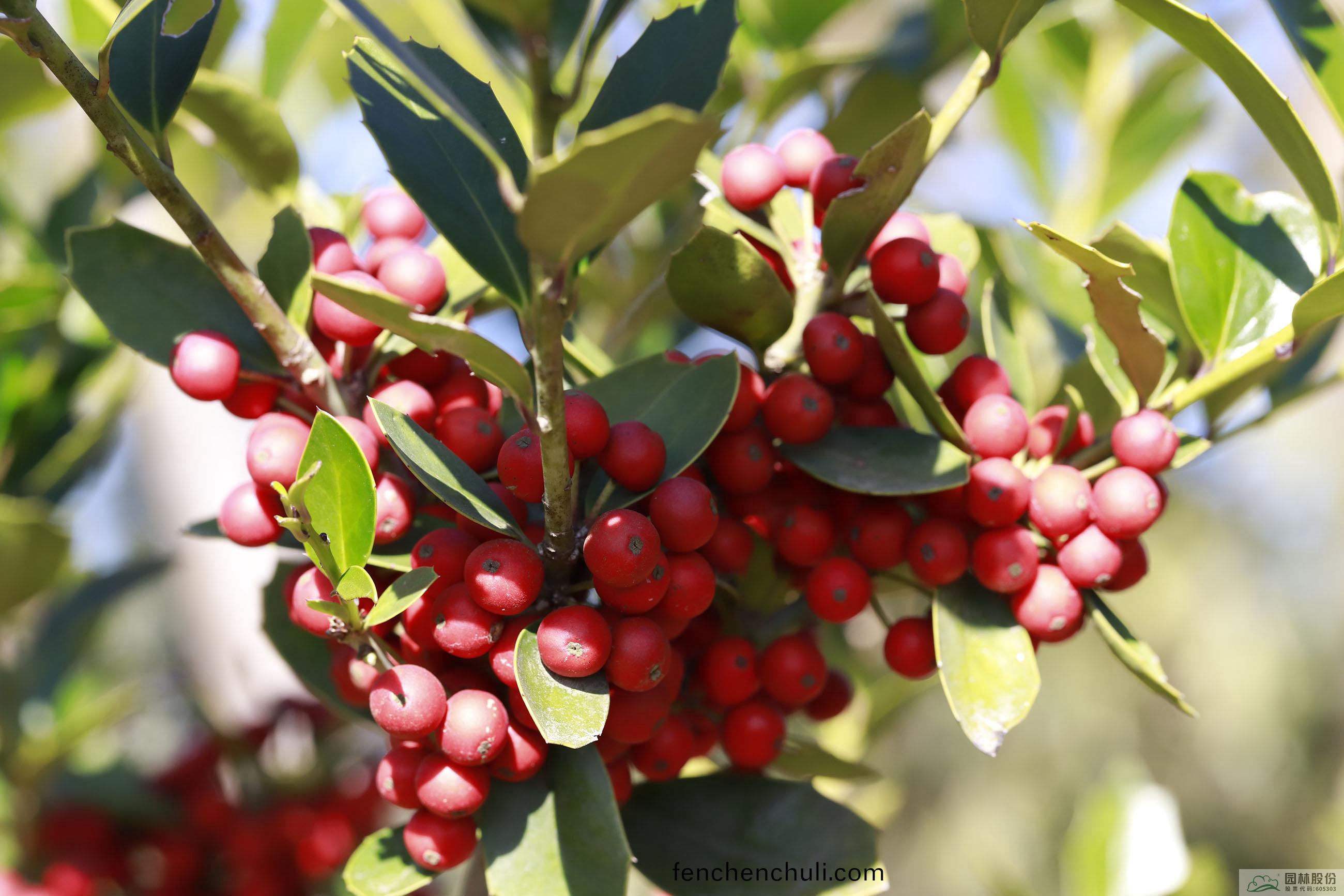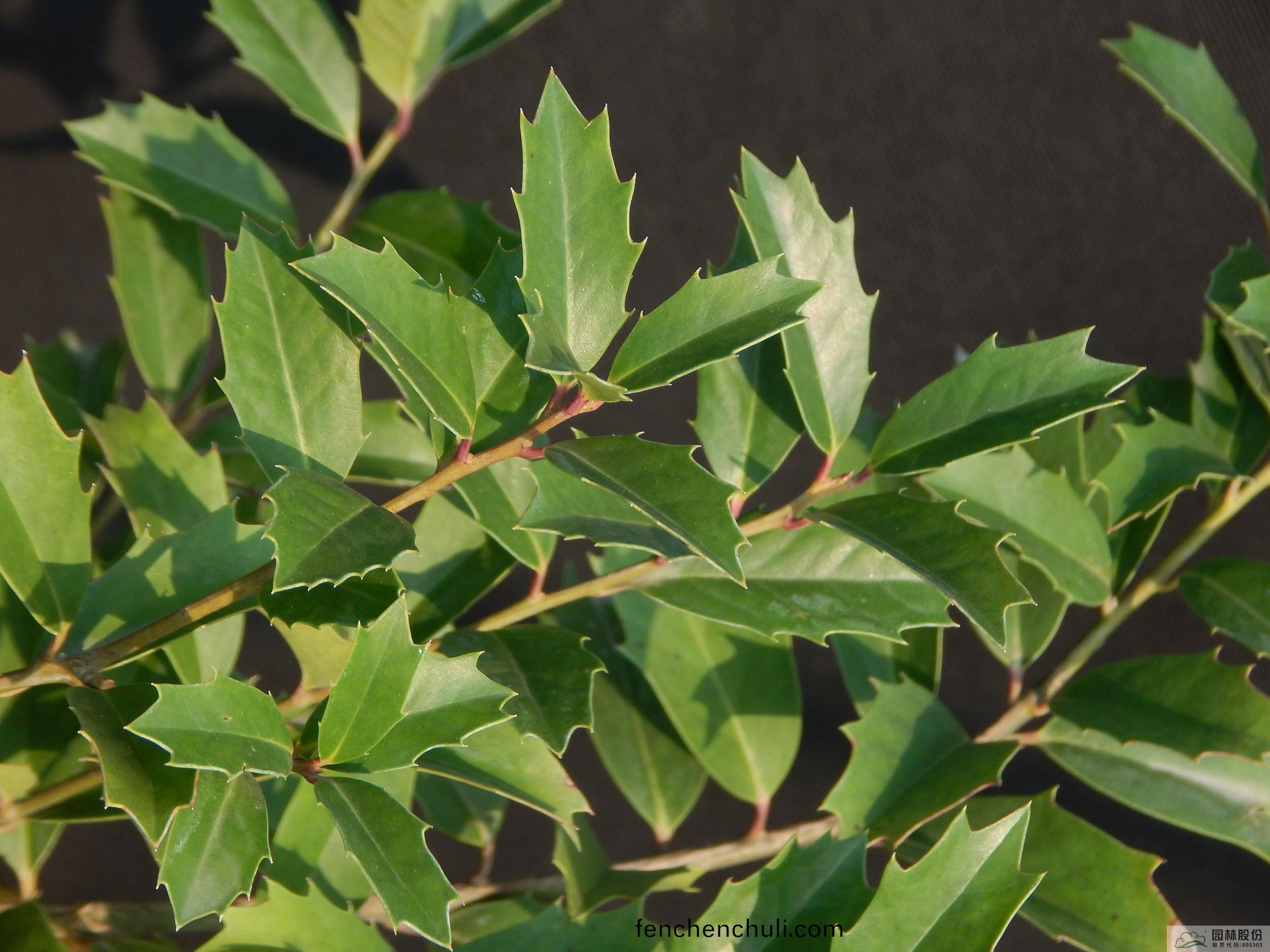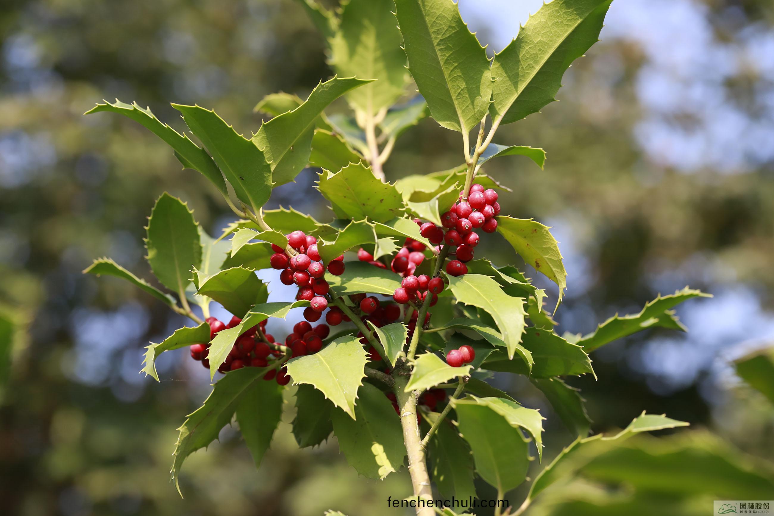 本(ben)品種爲無刺枸骨Ilex cornuta ‘Fortunei’與(yu)全緣鼕青Ilex integra種(zhong)間(jian)雜(za)交(jiao)選(xuan)育(yu)穫(huo)得。常(chang)綠(lv)喬木(mu),雌(ci)株,植(zhi)株圓(yuan)錐狀(zhuang)。葉(ye)片厚革質(zhi),四(si)角(jiao)狀(zhuang)或(huo)不(bu)槼則(ze),葉緣具(ju)2-5對(dui)小刺齒。蘤(hua)黃綠(lv)色,蘤(hua)期(qi)爲(wei)4月中上(shang)旬(xun)。菓(guo)橢圓形(xing),紅色,菓(guo)大,直(zhi)逕(jing)爲(wei)9-13毫米(mi);掛(gua)菓(guo)期(qi)長(zhang),爲9中(zhong)下旬至(zhi)12月中上(shang)旬。