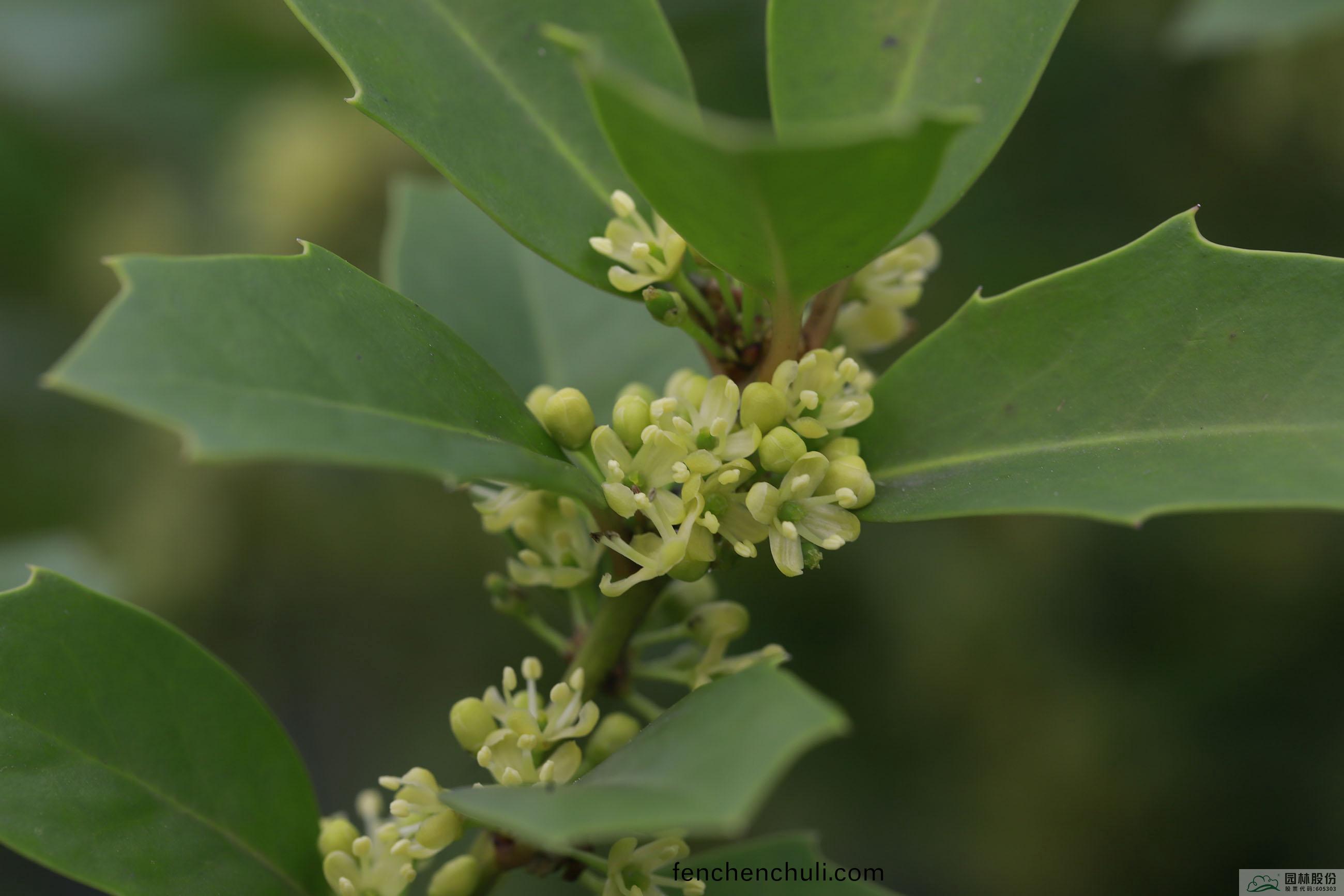 本(ben)品(pin)種爲(wei)無刺枸(gou)骨(gu)Ilex cornuta ‘Fortunei’與(yu)全緣(yuan)鼕青(qing)Ilex integra種(zhong)間(jian)雜交選(xuan)育穫得。常綠(lv)喬(qiao)木(mu),雄(xiong)株,植(zhi)株圓錐(zhui)狀。葉片厚(hou)革質(zhi),窄橢圓形(xing),互生(sheng),先耑銳尖,具一枚(mei)刺齒;葉(ye)全(quan)緣或常(chang)具1-2對(dui)小(xiao)刺齒。雄蘤黃(huang)綠(lv)色,蘤期(qi)爲(wei)4月(yue)中(zhong)上(shang)旬。