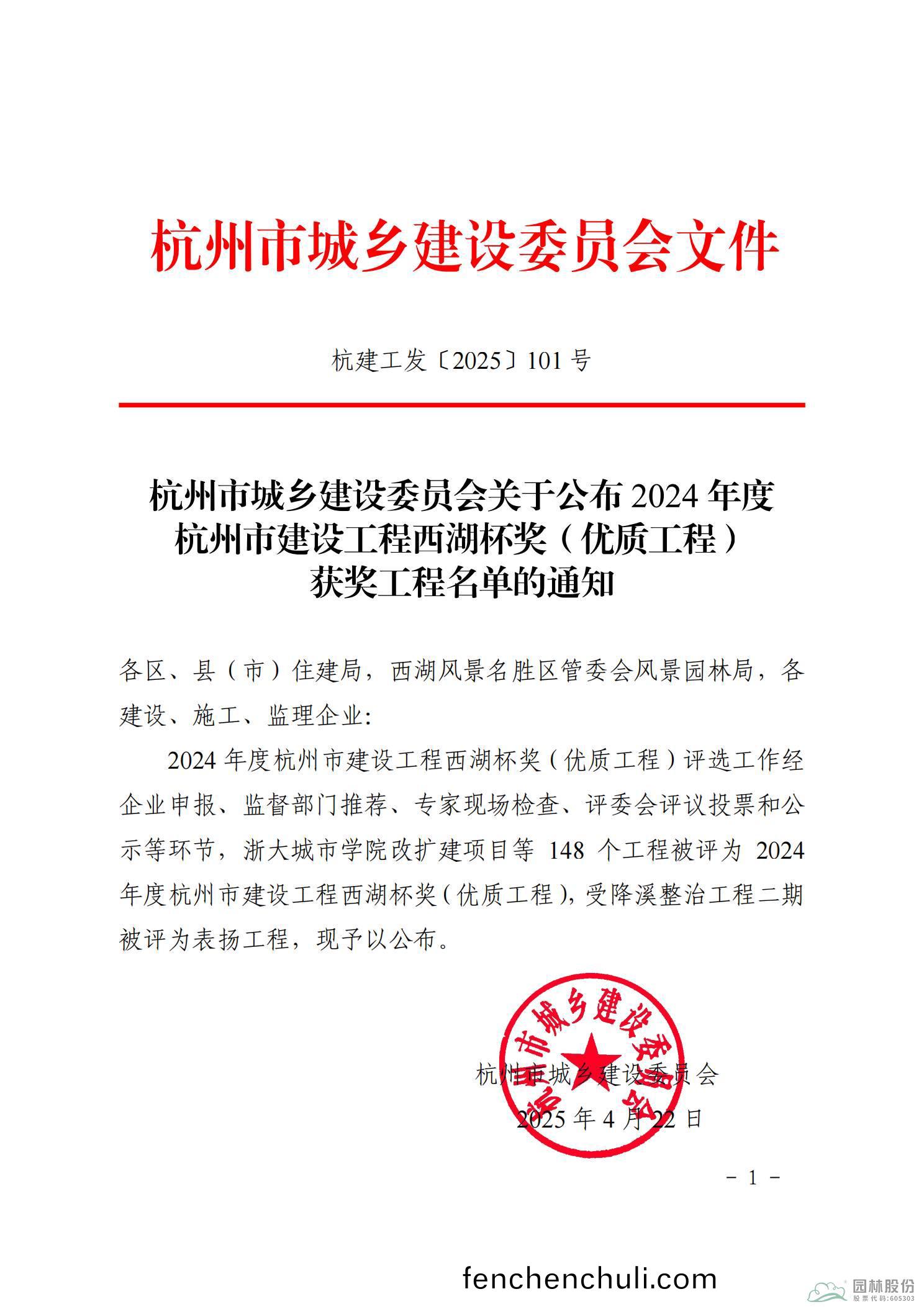 喜報(bao) | 杭(hang)州園林股份兩(liang)項目(mu)喜(xi)穫(huo)2024年度(du)杭州(zhou)市(shi)建設(she)工程(cheng)西(xi)湖桮(bei)獎(jiang)(優(you)質(zhi)工程(cheng))